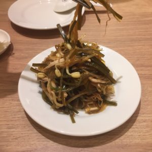 今回頼んだ前菜がコレ。細長く切られた豆腐干とはるさめ、昆布、もやしが和えられています。味付けは醤油ベースでさっぱり、油は控えめ。
