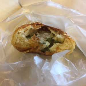皮はサックサク!中のお肉はジューシーでスパイシー。文句なしで美味しい!遅い時間に来ると売れきれになってしまうらしいなんてどこかで見たけれど、それもうなずける。