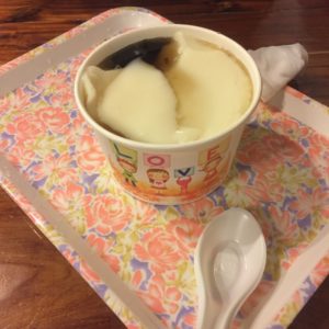 とりあず小腹が空いたので通りかかったお店で豆花を頂きました。仙草ゼリーとサツマイモだんごをトッピング。ゼリーはほんのり苦みがあって、サツマイモだんごはもちもちで美味しい。豆花は基本的にどこで食べてもハズレが少ないのかも。