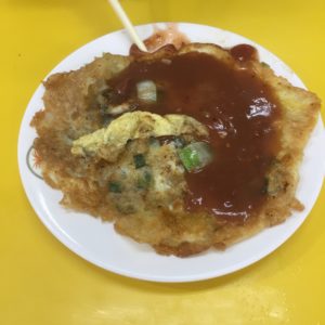 でもせっかくなので何か食べようと、蚵仔煎(オアジェン)牡蠣のオムレツを頂きました。せっかくだからビールもね。