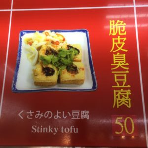 台湾でよく見かける日本語。時々ちょっと不思議な訳になってて面白い。ここでは「臭豆腐」のことを「くさみのよい豆腐」と訳してありました。なかなかいい訳ですよね(笑)